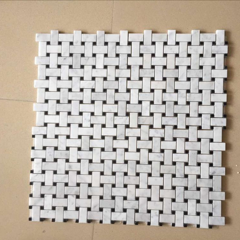 Bathroom Tiles Mosaic Large Piece China Tile Mosaic Basketweave White Carrara Oriental White Marble Mosaic
